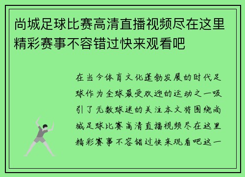 尚城足球比赛高清直播视频尽在这里精彩赛事不容错过快来观看吧